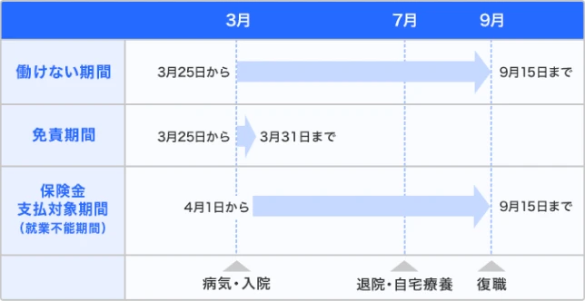 - 免責期間とは、保険金をお支払いしない期間をいいます。